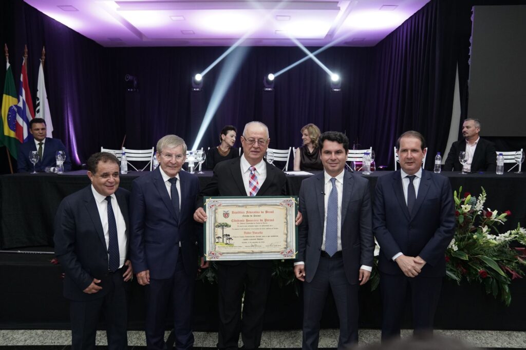 Existem reconhecimentos que meramente atestam conquistas, e existem aqueles que selam, com a solenidade que apenas o Estado pode conferir, a passagem de construtores silenciosos ao panteão daqueles que moldaram o destino coletivo de uma região inteira. A noite de 5 de dezembro pertenceu à segunda categoria. Na Assercoop de Medianeira, sob os olhares de lideranças regionais, deputados estaduais e autoridades que compõem o mosaico político e empresarial paranaense, a Assembleia Legislativa conferiu o Título de Cidadão Honorário do Estado a dois homens cuja trajetória se confunde com a própria história do cooperativismo e do agronegócio no Oeste paranaense: Valter Vanzella e Elias José Zydek.