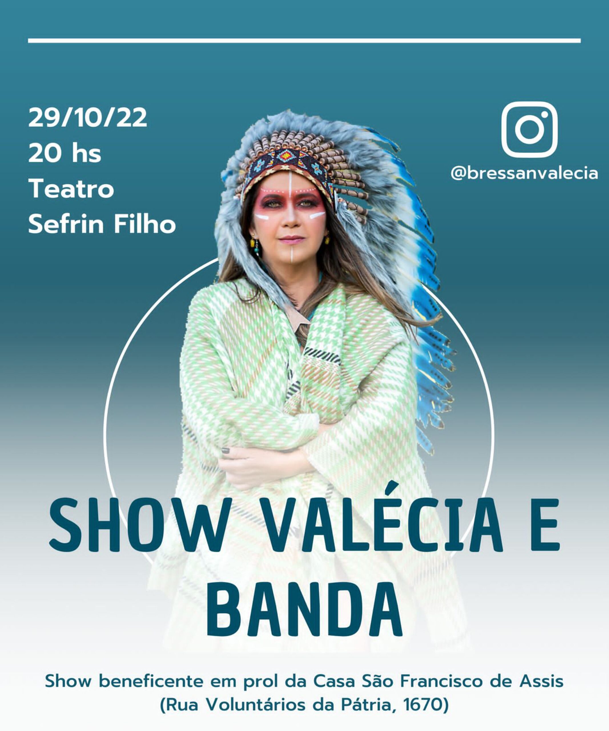 Sábado, 29, a professora de canto, instrumentista e maestrina Valécia Bressan fará um show beneficente em prol da Casa de Francisco de Assis no Teatro Municipal Sefrin Filho.